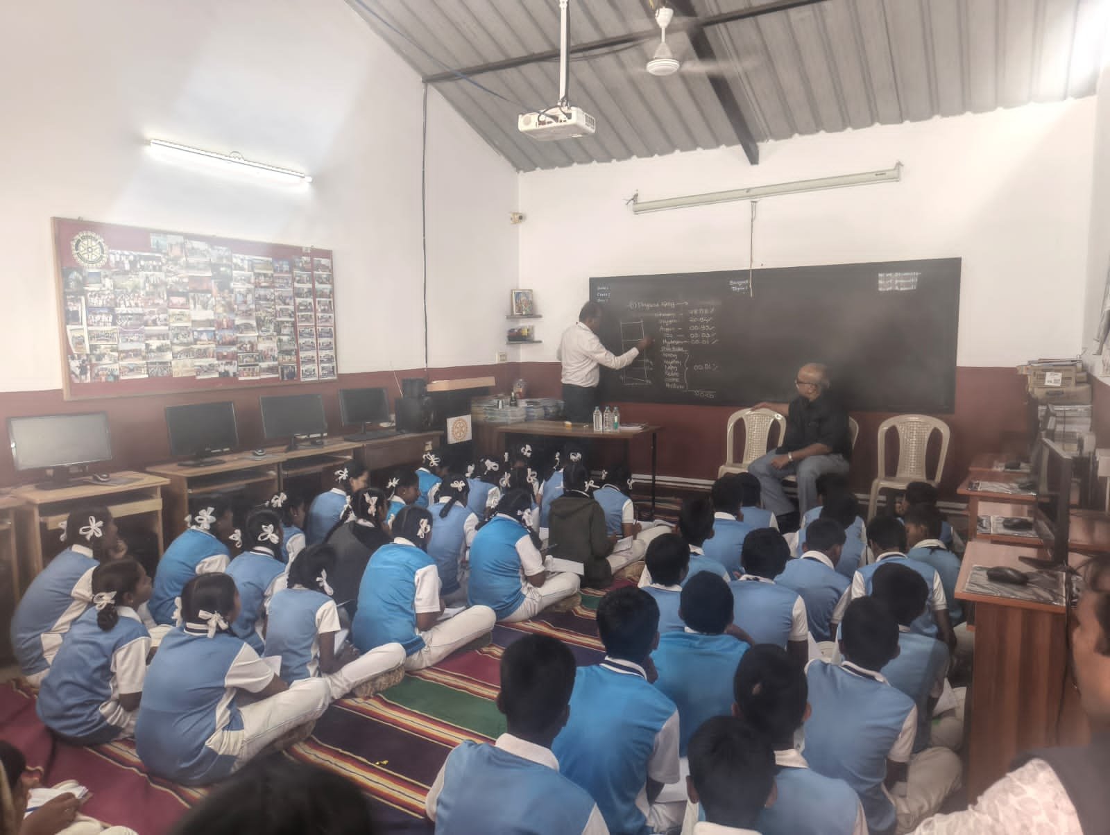 In the beginning we started Pre-Nursery, LKG and UKG for rural children of Vajamangala Village. During the year 2008-09 when Rtn. Mallaraje Urs M. was president of the club. We celebrated Silver Jubilee of our club. To commemorate the celebration constructed first floor where we started Tailoring class to rural women.